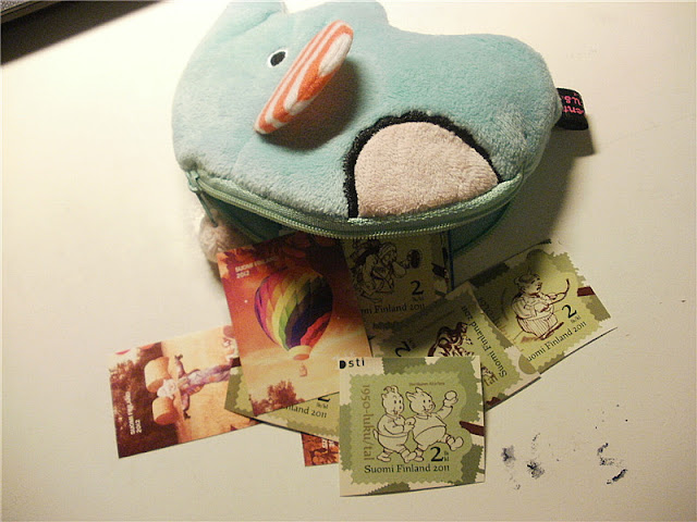 Laiton viikko pari sitten yhteistilauksen kaverini kanssa Postiin ja nyt on taas mukava kasa postimerkkejä liimattavaksi postiin! Mun lempparimerkkejä on tällä hetkellä noi Syysuni- ja Rock and Pop -merkit. Muumimerkkejä ostin ulkomaille menevää postia varten.